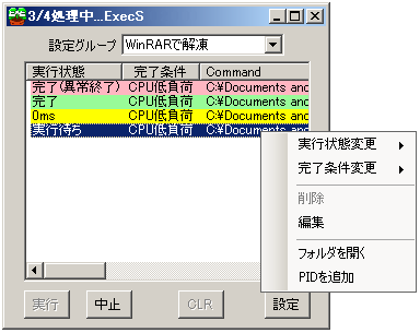 サンプルの設定に「WinRARで解凍」と「WinRARで圧縮」という設定グループを作っておきましたので、内容を確認してみてください。